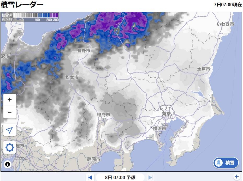 今後の気象情報にご注意ください。明日7時の積雪予想