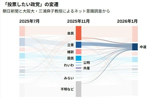 投票先、自民伸び29% 中道はちょうど立憲+公明分 朝日阪大調査 – 衆議院議員総選挙(衆院選) [衆院選(衆議院選挙)2026]:朝日新聞