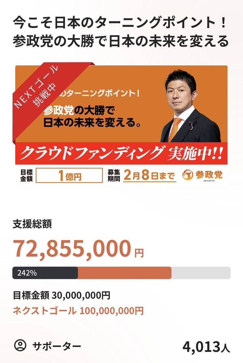 クラファンってことは何かするためのお金なんだろうけど1億程度じゃ衆院選のためには少なすぎるし