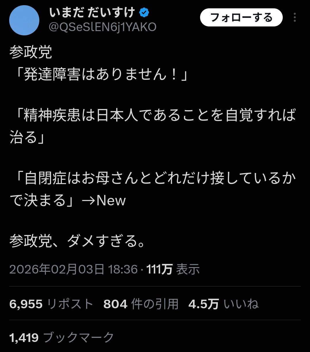 参政党が発達障害に異常に粘着してるのなんか理由あるんか?