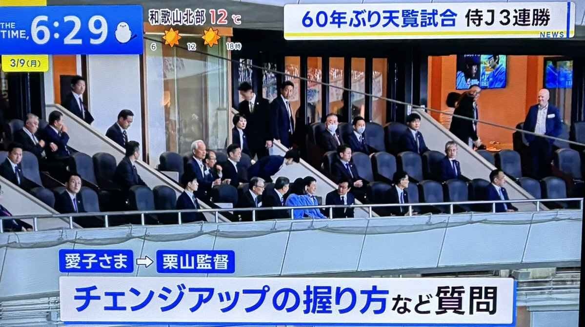 天皇ご一家は、東京ドームでWBCの試合を観戦されました。 ブルーを基調とした装いの天皇皇后両陛下と長女・愛子さまは、午後5時半ごろ、東京ドームに到着し、関係者の出迎えを受けられました。
