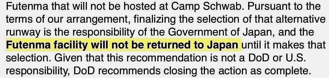 そもそもアメリカ政府は一度たりとも普天間を返還するなんて合意も公言もしてないからな