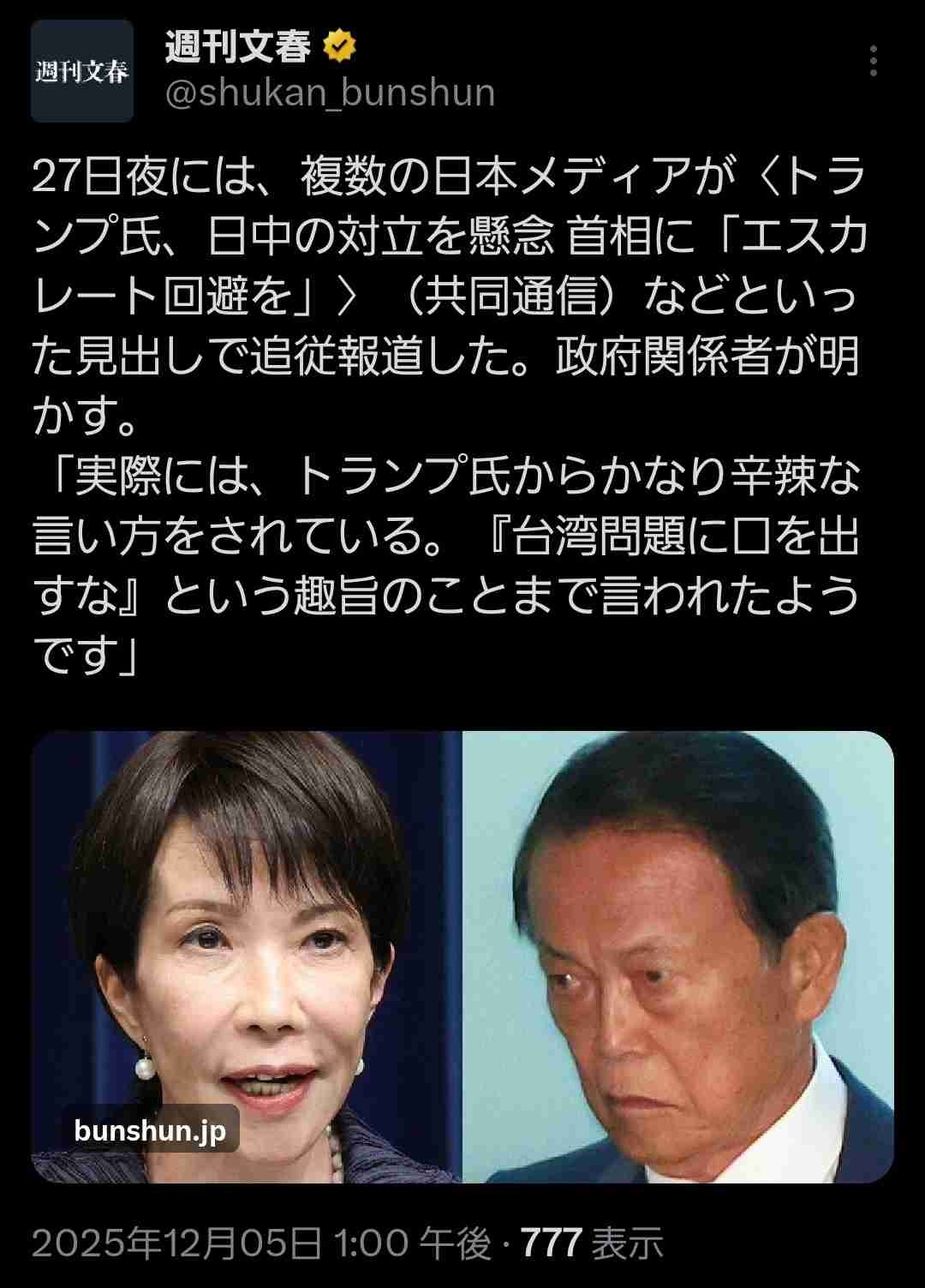 - https://x.com/shukan_bunshun/status/1996791691110486141