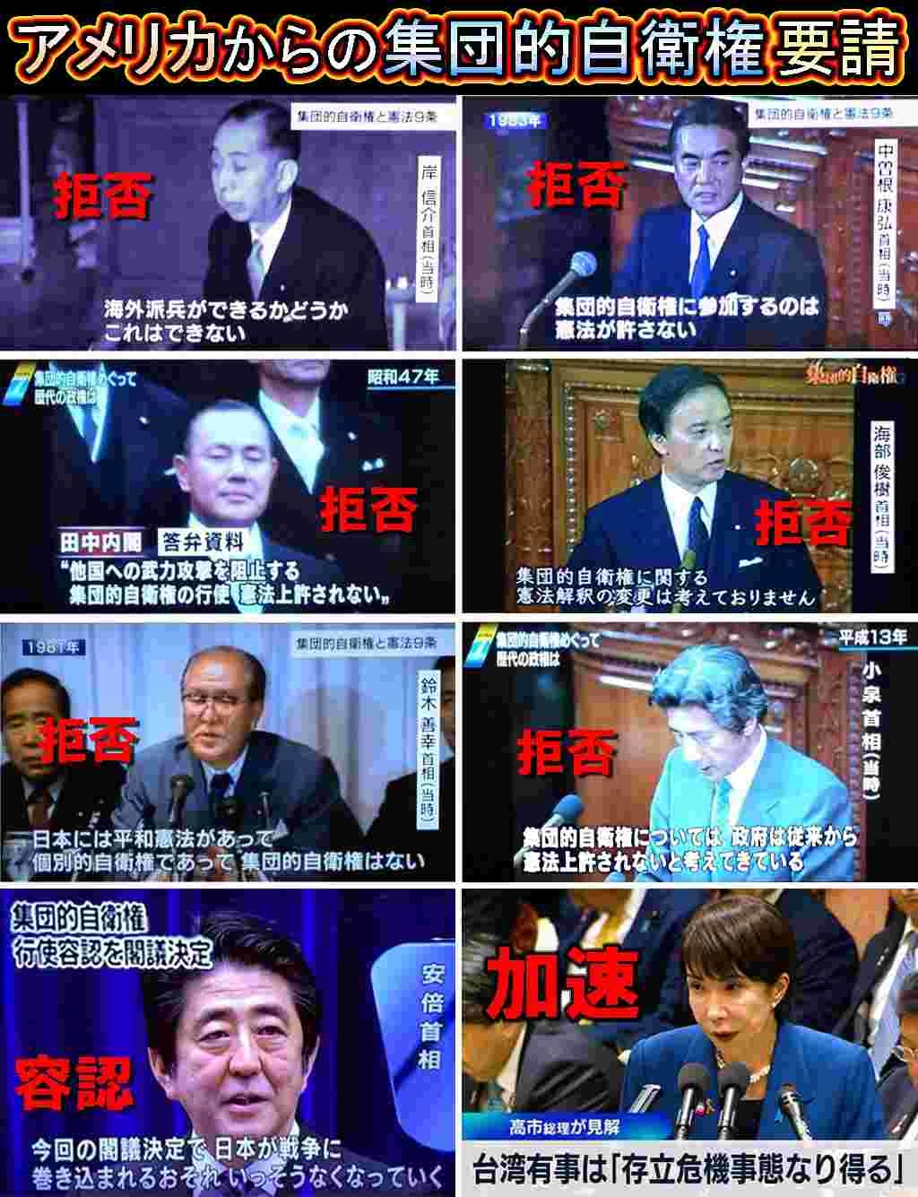 - A級戦犯岸ですら拒否した集団的自衛権を推し進めた安倍高市