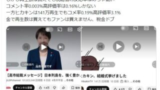嫌儲 星野ロミ「自民党が選挙対策で動画の再生数購入、再生数は買えても視聴者の反応率はめちゃ低いコメント率0.003%高評価率は0.16%