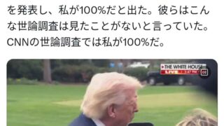 嫌儲 トランプ「CNNの世論調査で、私は支持率100%だ。CNNも、そんな数字は見たことないと言っている」