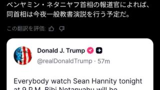 嫌儲 トランプ「今夜9時(日本時間今日11時)にネタニヤフが重大発表するぞ!!」