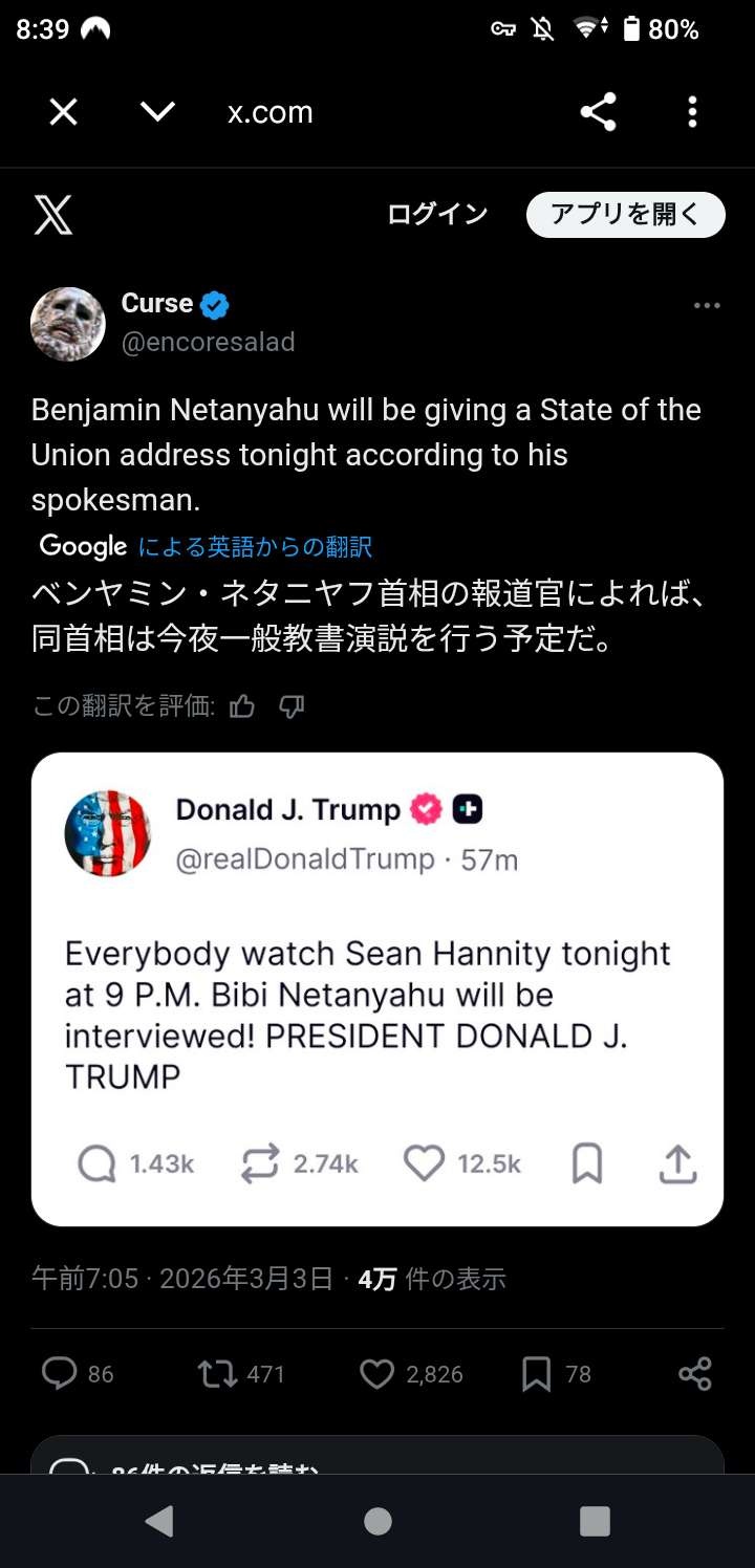 なんで大国の大統領が「続きはCMの後で!」みたいな番宣してんのこれ? - 24 : 2026/03/03(火) 09:37:58.19 ID:WfuDFPYt00303