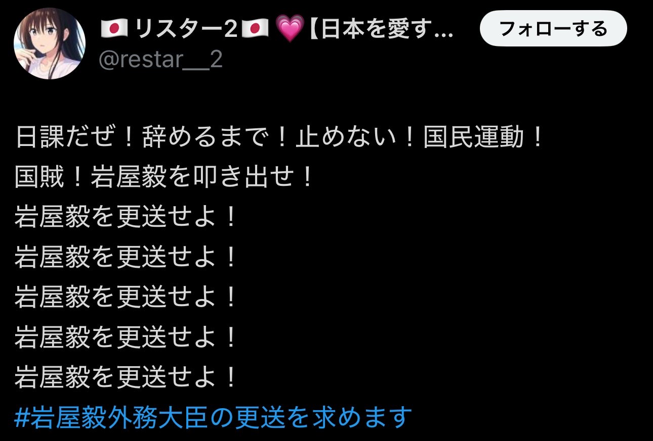 普通の日本人「岩屋毅外務大臣の更送を求めます」ハッシュタグがブームに