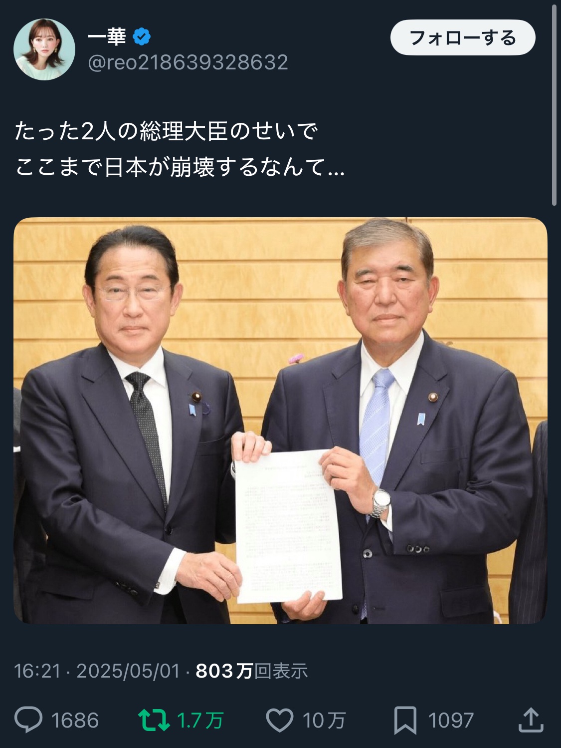 「たった2人の総理大臣のせいでここまで日本が崩壊するなんて…」10万いいね
