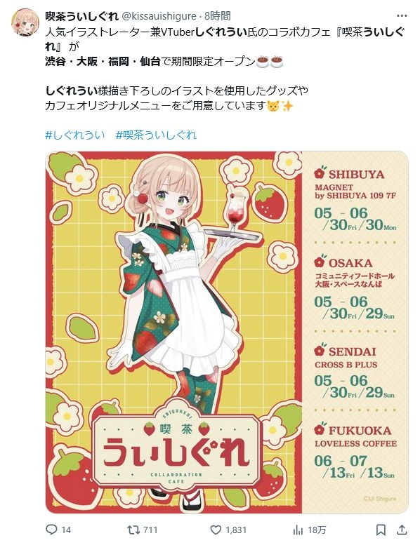 - コラボカフェに関してはグローバルゲートにやっつけでコラボカフェ用スペース2つ作ったから今後増える可能性あるけど