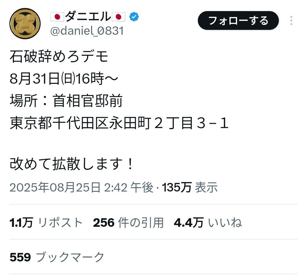 なんで主張が極右の石破相手で日の丸掲げてんだよって話だな、結局同じ奴が騒いでたんだなっていう - 6 : 2025/08/26(火) 02:38:51.35 ID:Nclf6sqp0