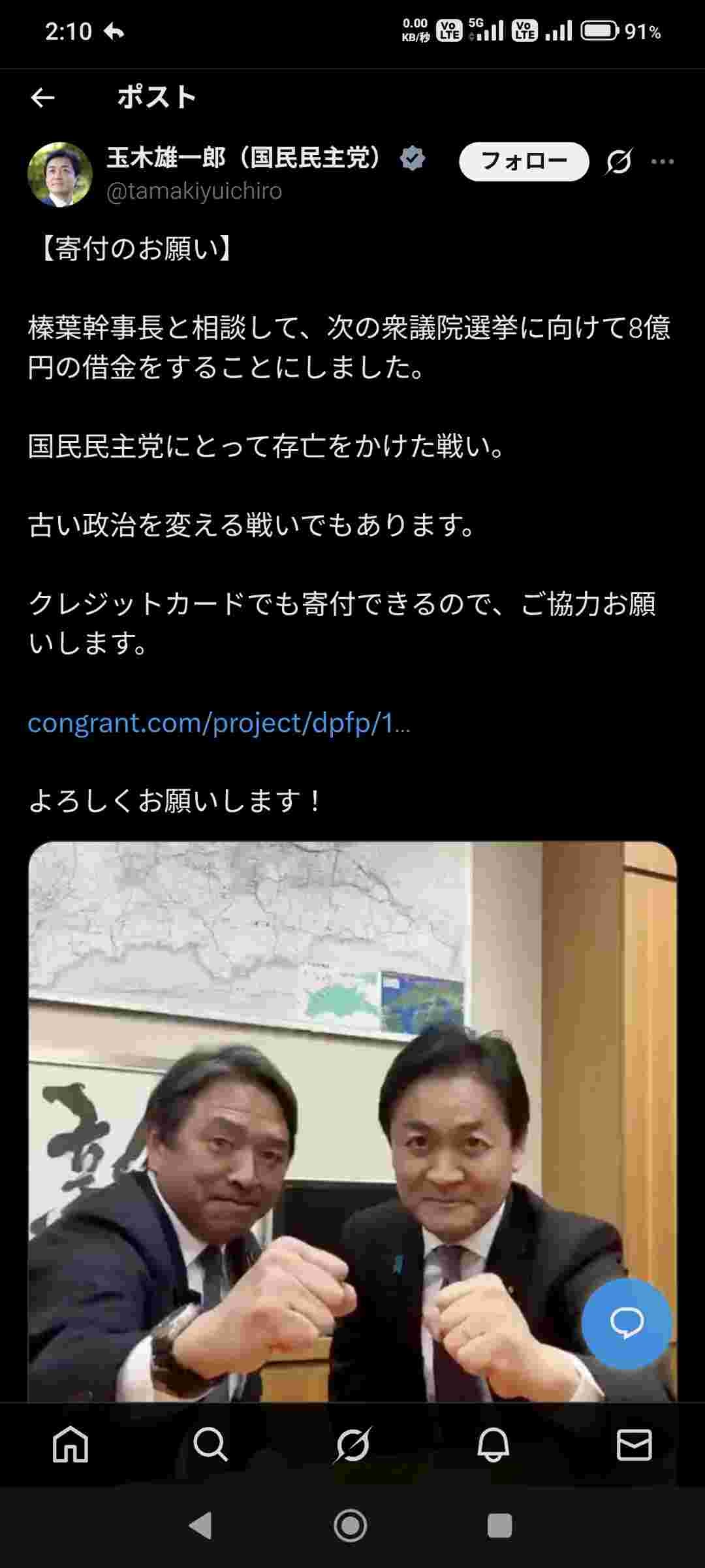 【寄付のお願い】 榛葉幹事長と相談して、次の衆議院選挙に向けて8億円の借金をすることにしました。 国民民主党にとって存亡をかけた戦い。 古い政治を変える戦いでもあります。 クレジットカードでも寄付できるので、ご協力お願いします。 よろしくお願いします!