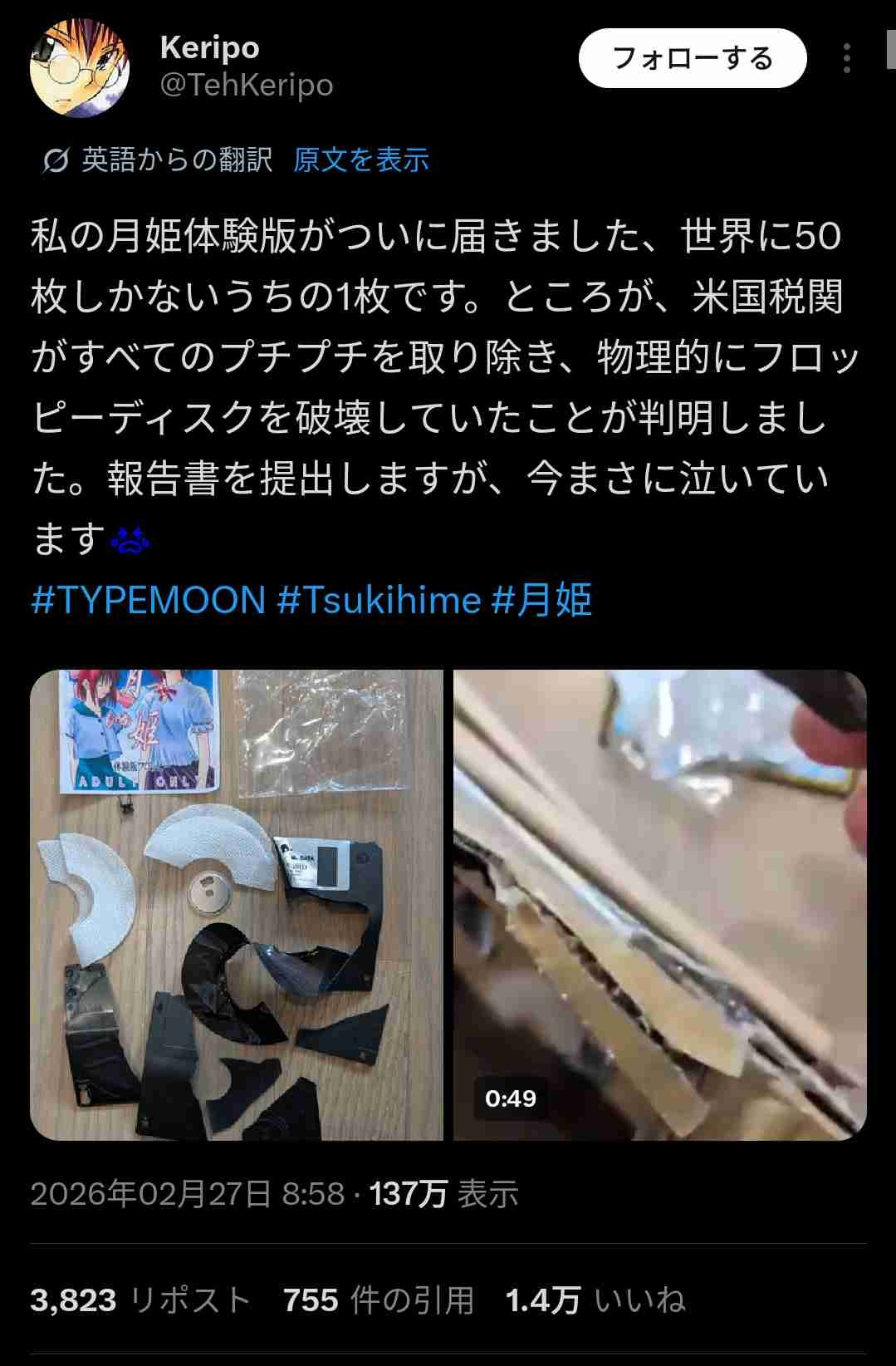 【動画】世界に50枚しかない月姫の体験版、アメリカの税関に破壊されるww