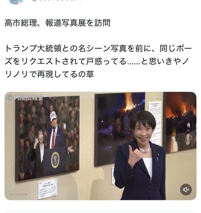 【動画】高市早苗、あの恥ずかしい写真の前でニッコリ笑顔でポーズを決める