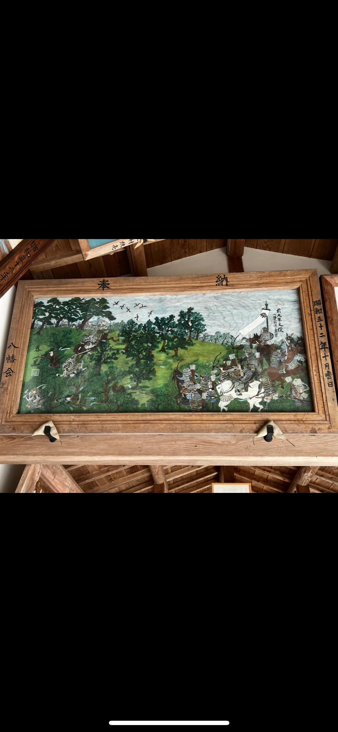 安倍晋三の先祖の安倍氏を討伐した前九年の役の絵が奉納されている