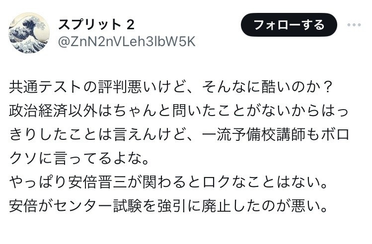 - 有識者「今の共通テストは知能検査になってる。地頭ゲーなので凡人は努力しても無意味」