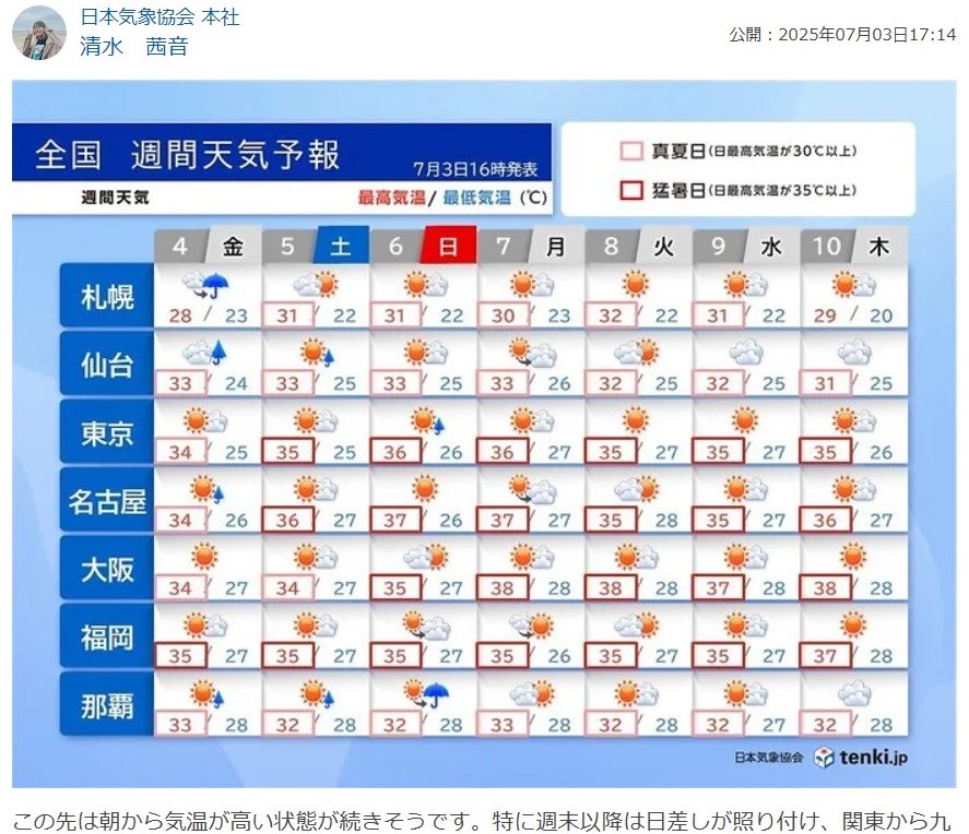 【猛暑】日本、明日から地獄。来週は38℃超えも