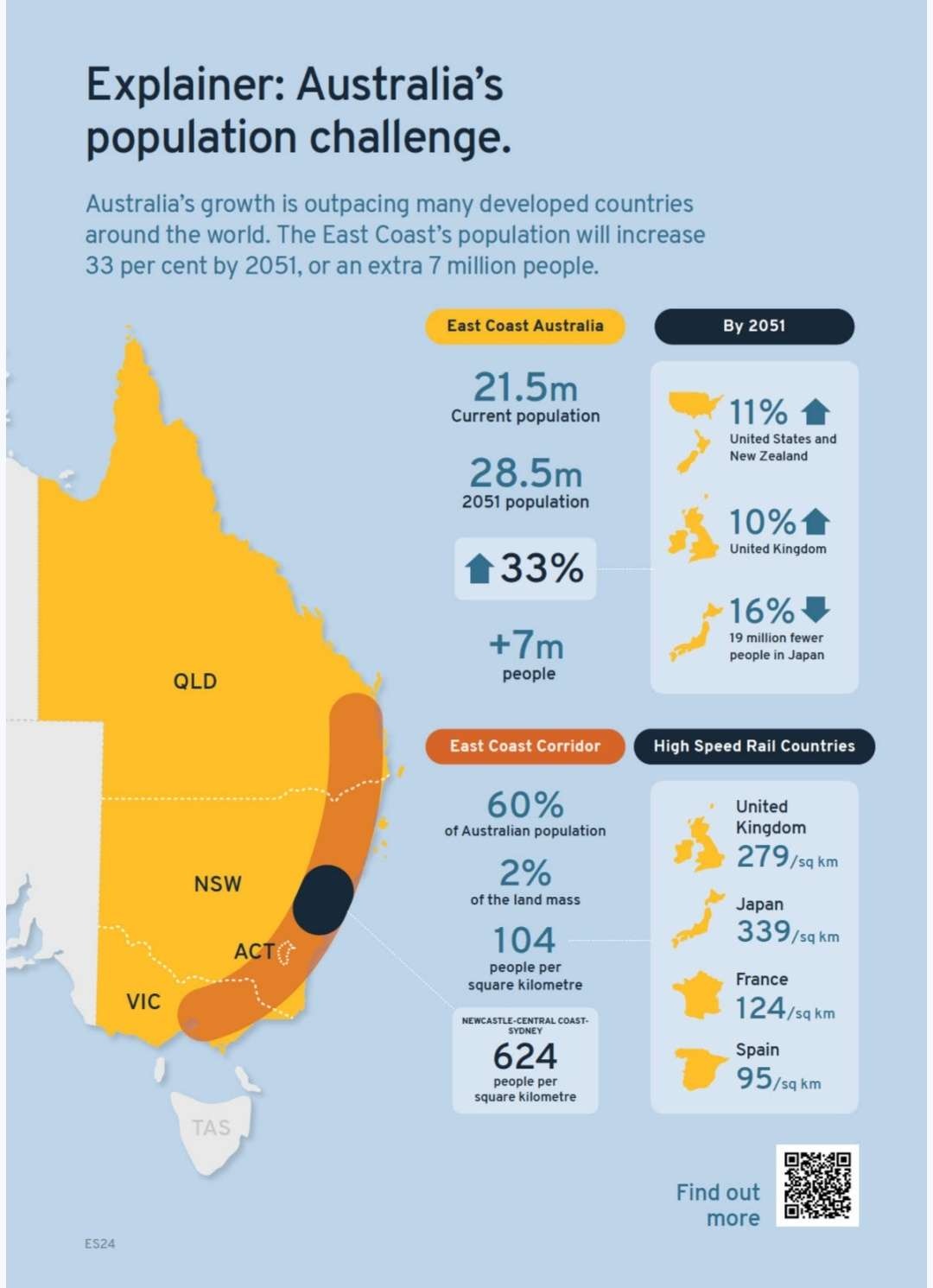 沿線エリアだけで見れば高速鉄道建ててるフランスやスペインの水準はあるし、フェーズ1のNewcastle-Sydneyに限ればかなり高密度、しかもこれから更に人口急成長の見込みってことだそう