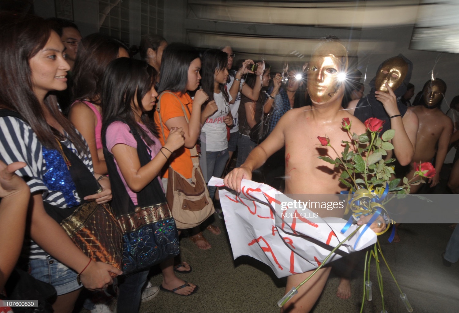 デモしてるのはフィリピン大学の学生友好団体Alpha Phi Omegaのメンバーって書いてあるから、そりゃ同級生ならメス顔になるだろ