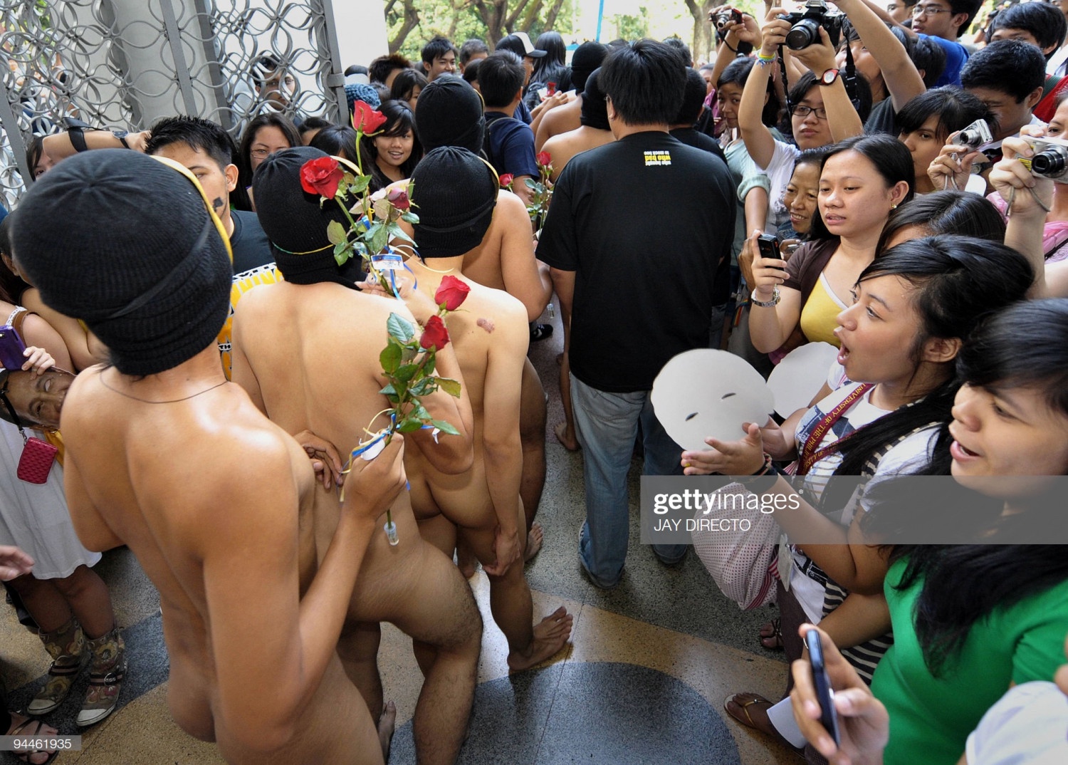 【画像】チ●コ丸出しの全裸デモを見たJK、完全に「メスの顔」になってしまう