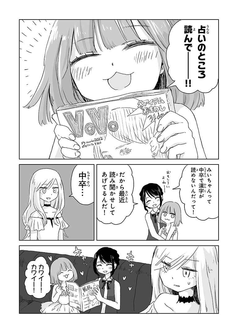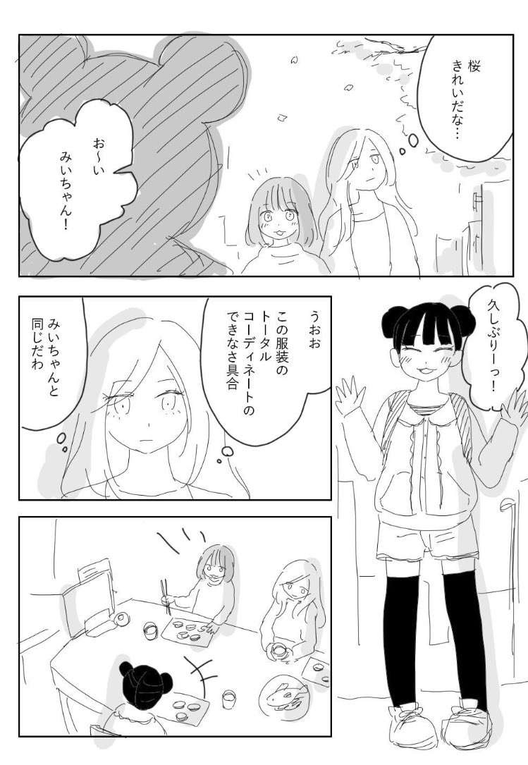 - みいちゃんと小学校からの親友のムウちゃん、輪ゴムをヘアゴム代わりにしてる模様