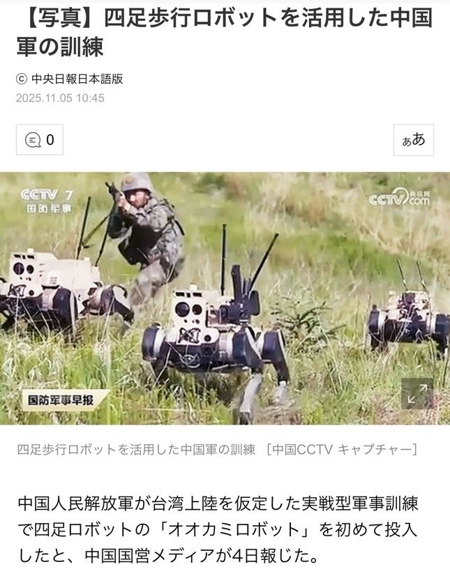 【写真】四足歩行ロボットを活用した中国軍の訓練中央日報 - 韓国の最新ニュースを日本語でサービスしますs.japanese.joins.com - 2 : 2025/11/05(水) 18:35:34.40 ID:57vyLQKt0