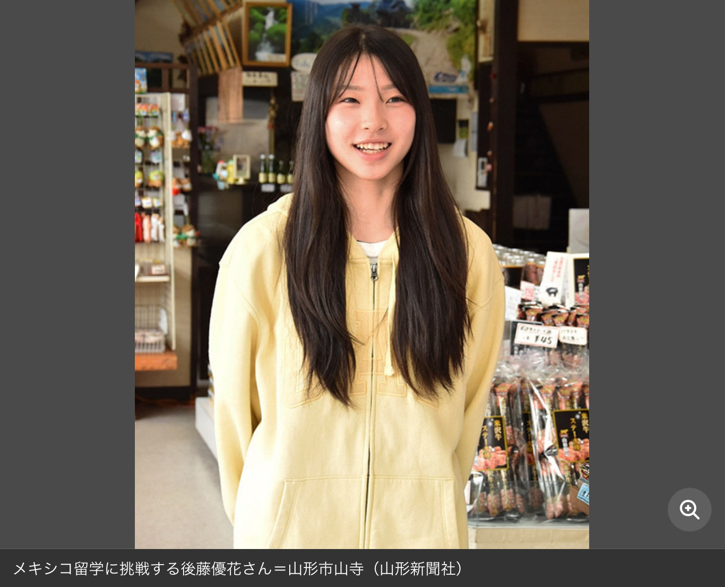 https://news.yahoo.co.jp/articles/af4b5575e6eac038292b3320a279c7681f737282現地でホームステイしながら高校に通い、スペイン語で学ぶ。後藤さんは、死者の魂を迎える「死者の日」というメキシコの風習に興味があるといい、「人を思いやる気持ちなど日本と通じるところがありそう。文化も学びたい」と意欲的だ。