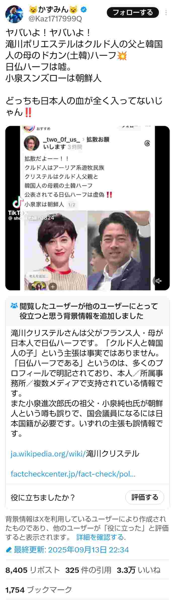 滝川さんはデマを拡散してもらった人に感謝すべきだろこれ - 6 : 2025/09/14(日) 20:55:19.33 ID:AWI+LX6T0
