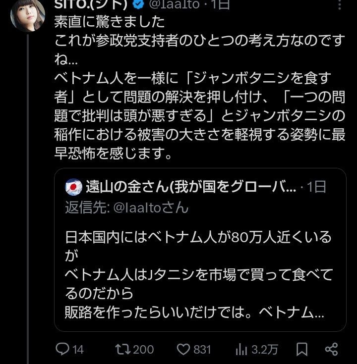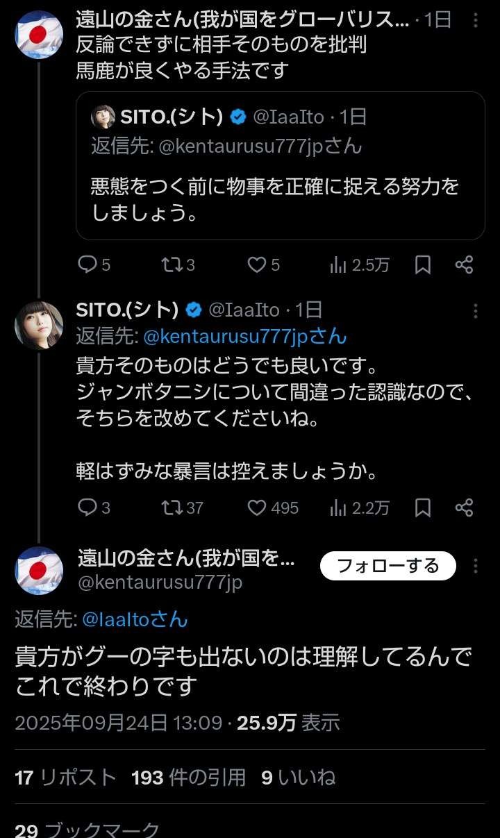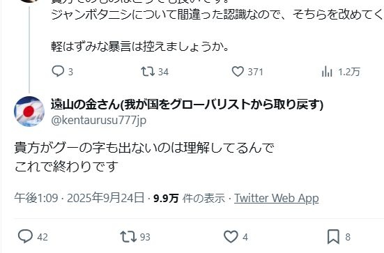 リツイートも含めてだろうけどそれでも頭おかしい - 36 : 2025/09/25(木) 21:07:25.64 ID:fqQ2UZEO0