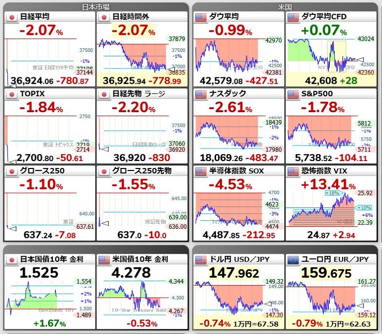 【画像】 日経平均大暴落 ついでにSP500も大暴落 トランプ政権が続く4年間こんな感じがずっと続くとか、メンタル保てるか?