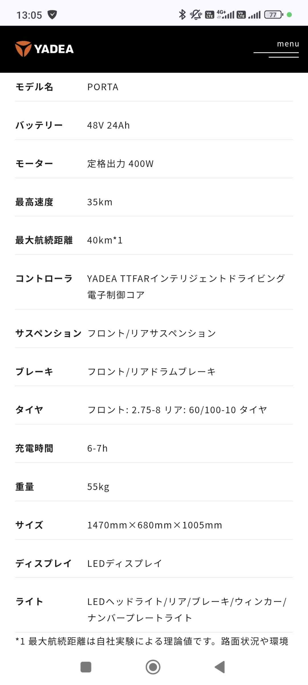 - 6時間充電で走行距離が40キロは少なすぎる