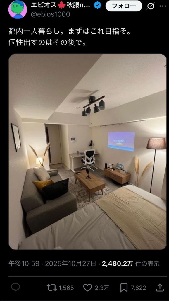 【画像】X女子「東京の狭いウサギ小屋で部屋をオシャレにしてる人、痛々しい」→都民大発狂