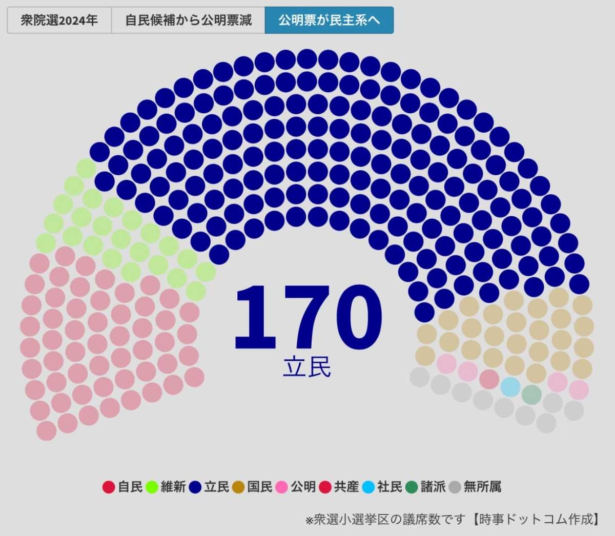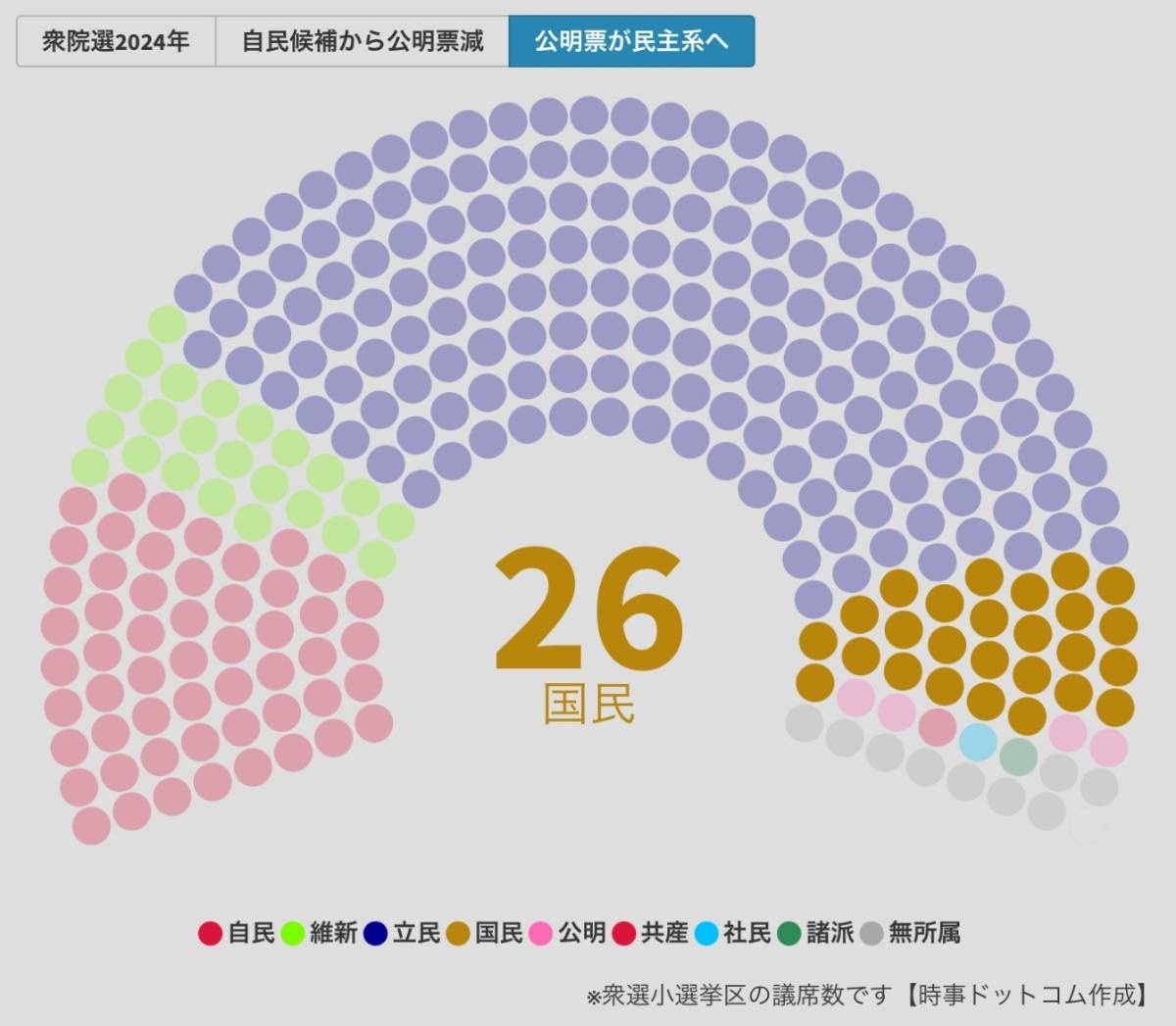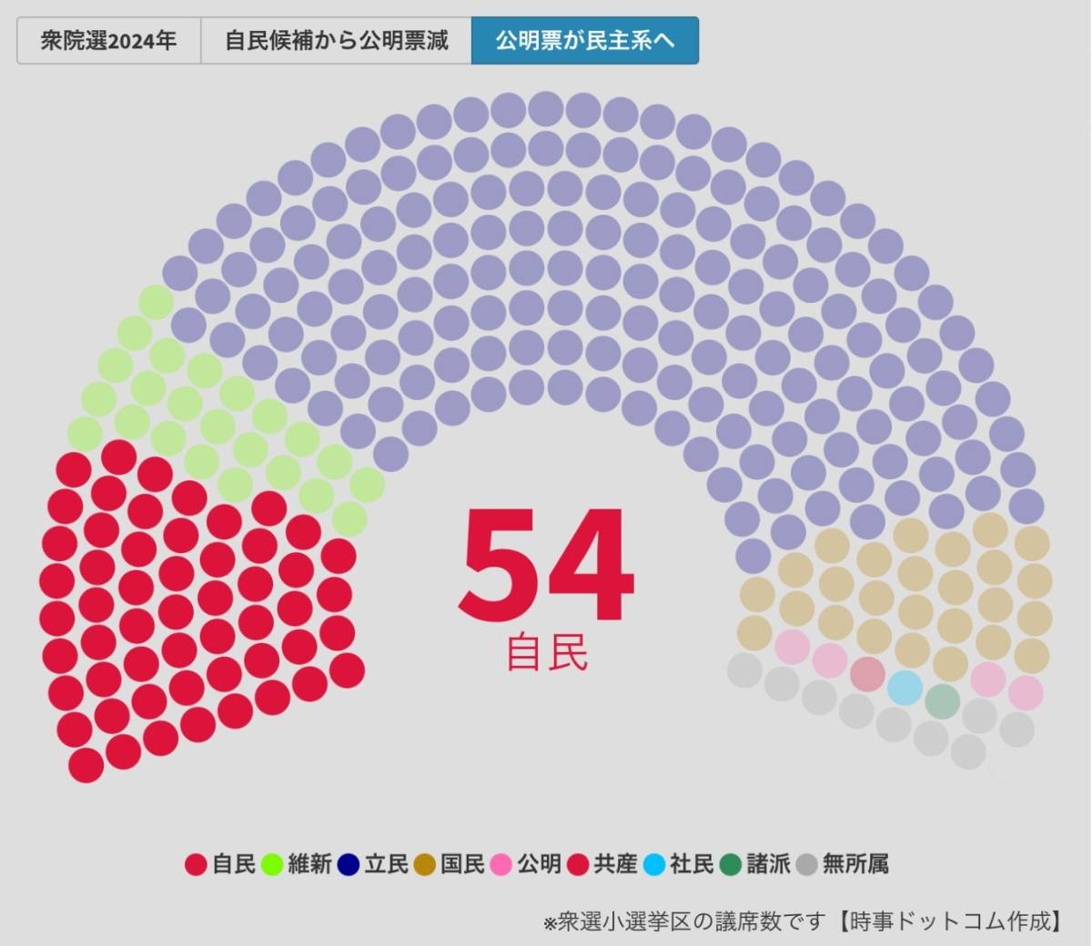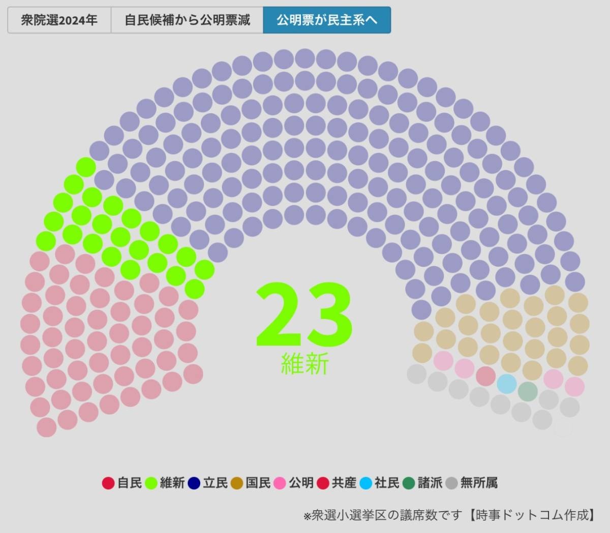 【試算】自民党・公明党の連立解消による影響シミュレーション(時事ドットコム)