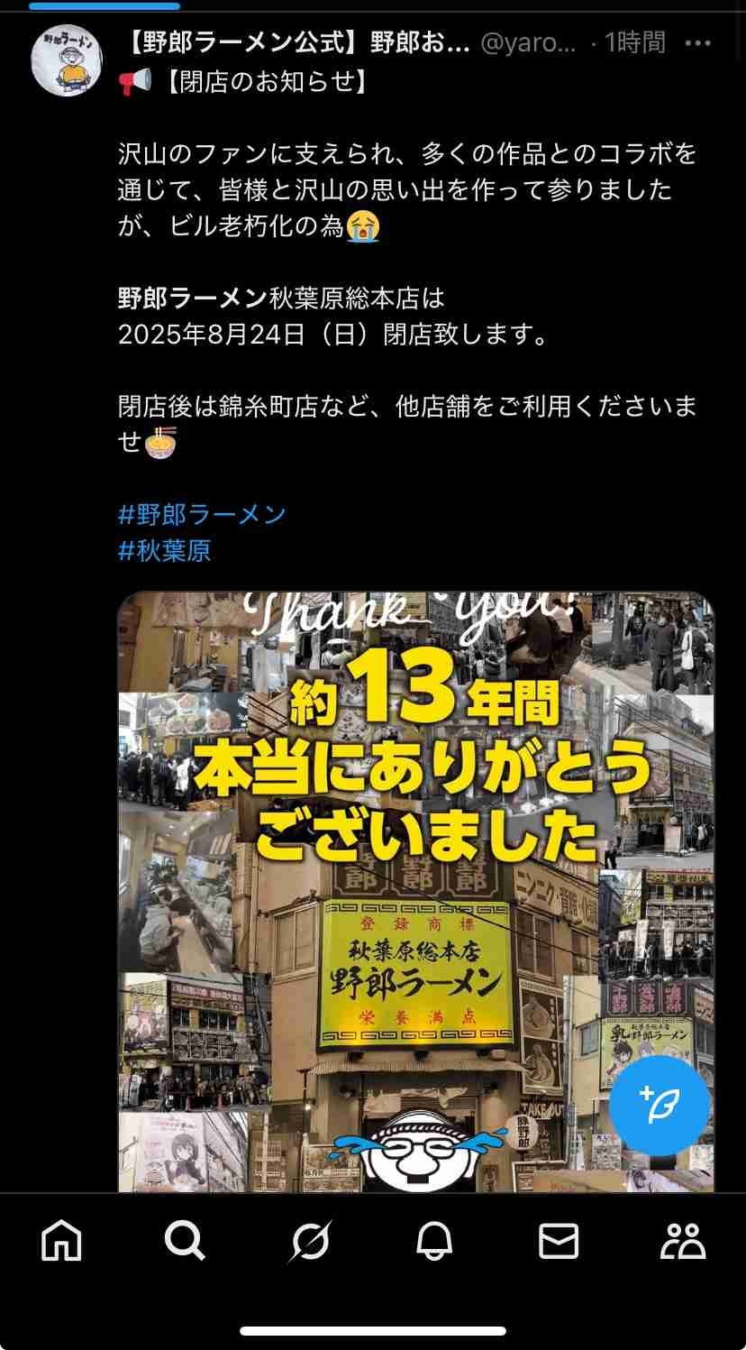 【超絶悲報】秋葉原の野郎ラーメン、閉店