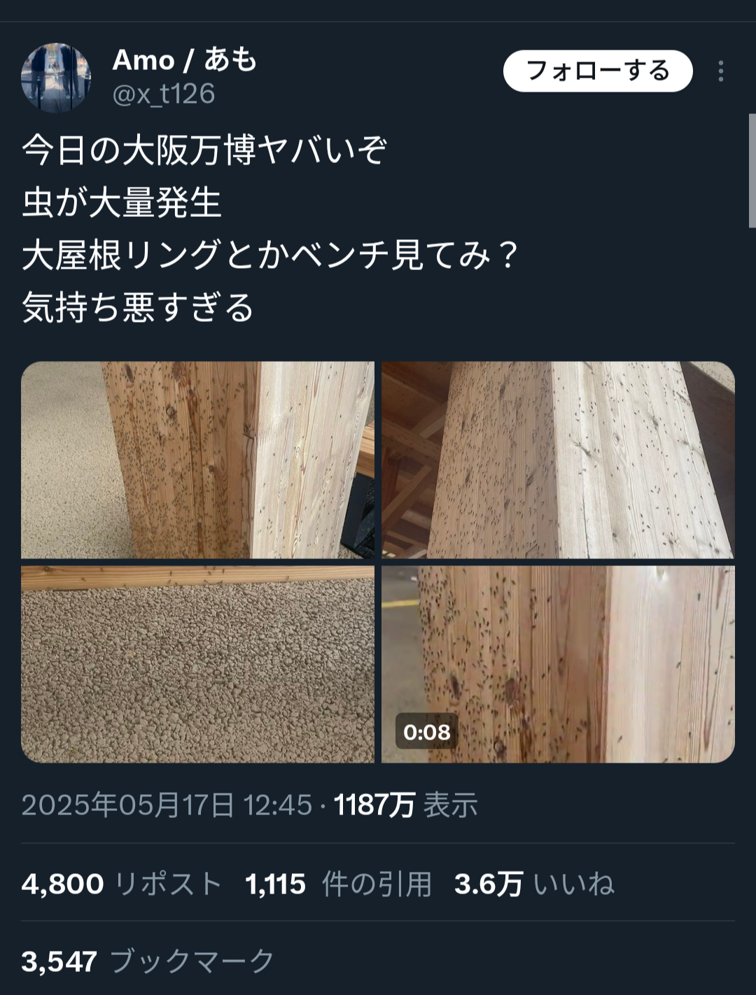 農薬批判してるくせに万博に虫大量に発生したら文句