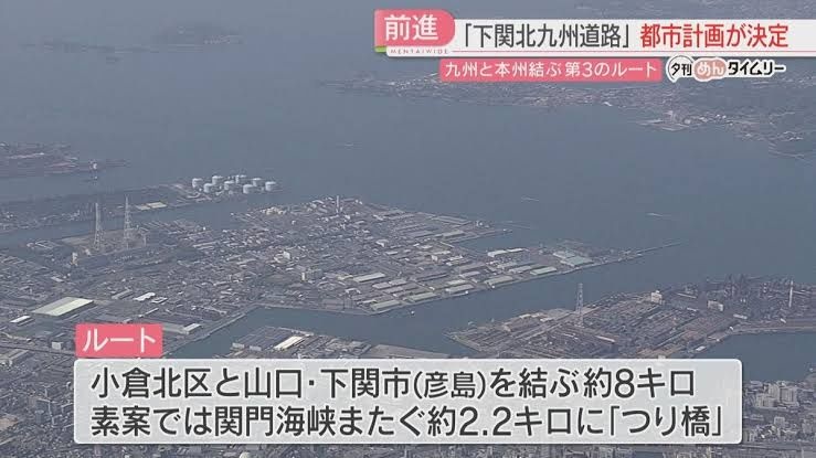 【高市橋】 建設費は1兆円超え? 下関と北九州を結ぶ新しい橋。「下関北九州道路」都市計画が決定! 🎉