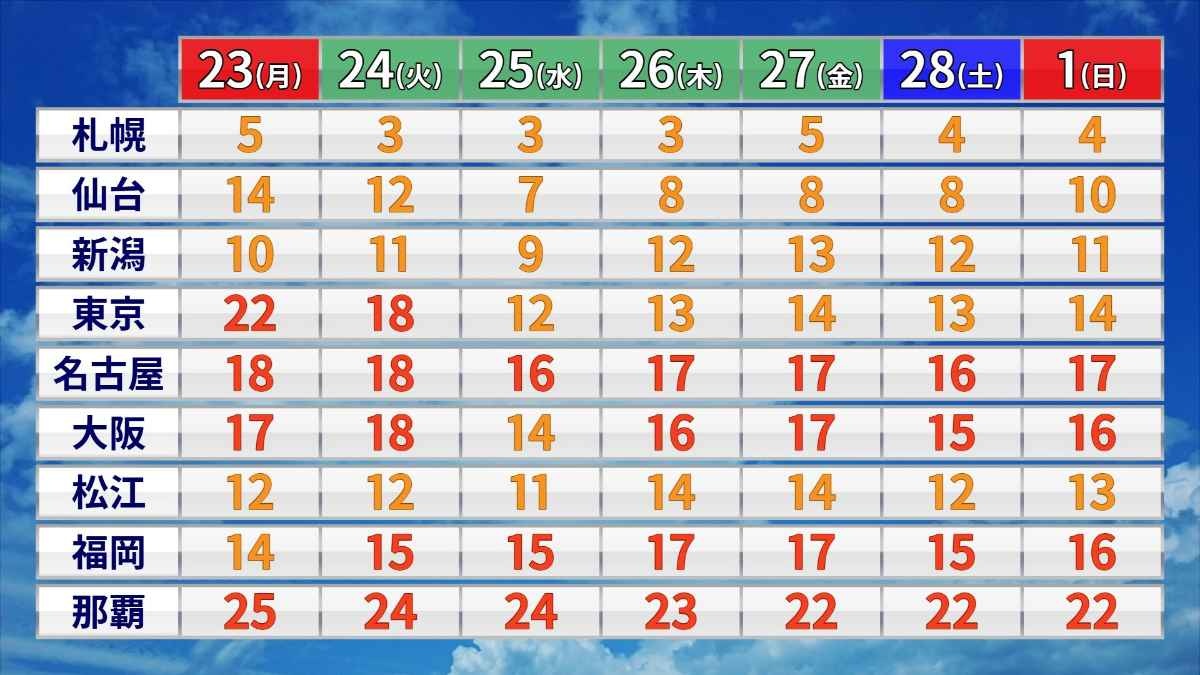 きょう23日、東京の最高気温22度🌞🥵🌞