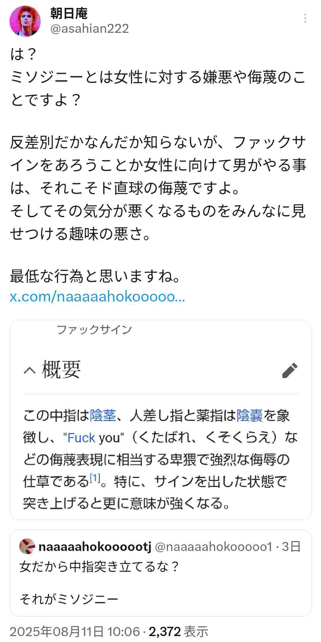 左翼、大激怒「ファックサインは陰茎を表す卑猥な侮辱。男性が女性に対してやるのは最低だろ!」しばき隊「参政党の演説中にフォグミストを使ってスモーク炊いてやった」