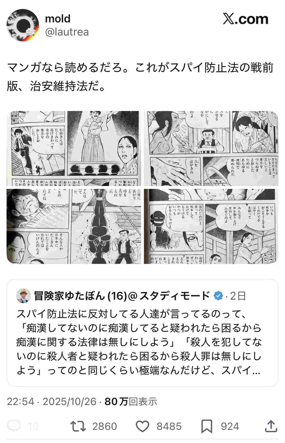 スパイ防止法がない理由ってそりゃ昔刃物強盗した奴に刃物を持たせないような配慮なんだろうな