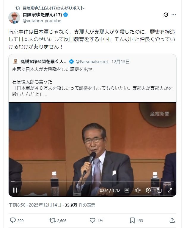 ゆたぽん、覚醒「支那人が支那人を殺した南京事件を捏造し日本人のせいにする中国を許すな!」