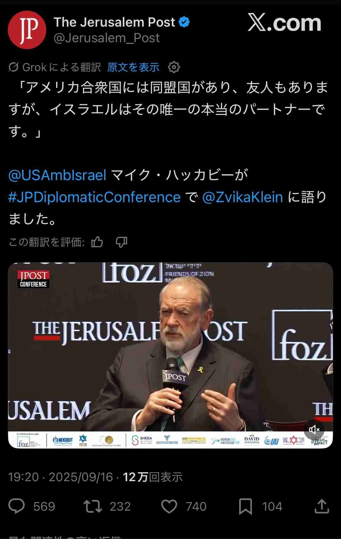 アメリカのユダヤ人がイスラエルを牛耳ってるから同じようなもんだけど、アメリカとイスラエルのどっちが大事かと訊かれたら彼らは当然アメリカと答えます - 10 : 2025/09/22(月) 18:04:19.85 ID:eeC5f2HM0