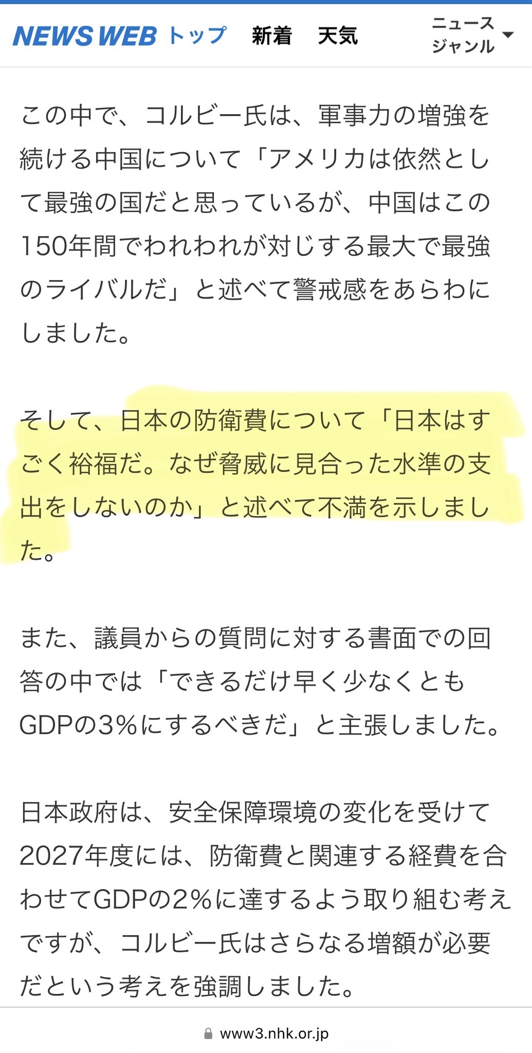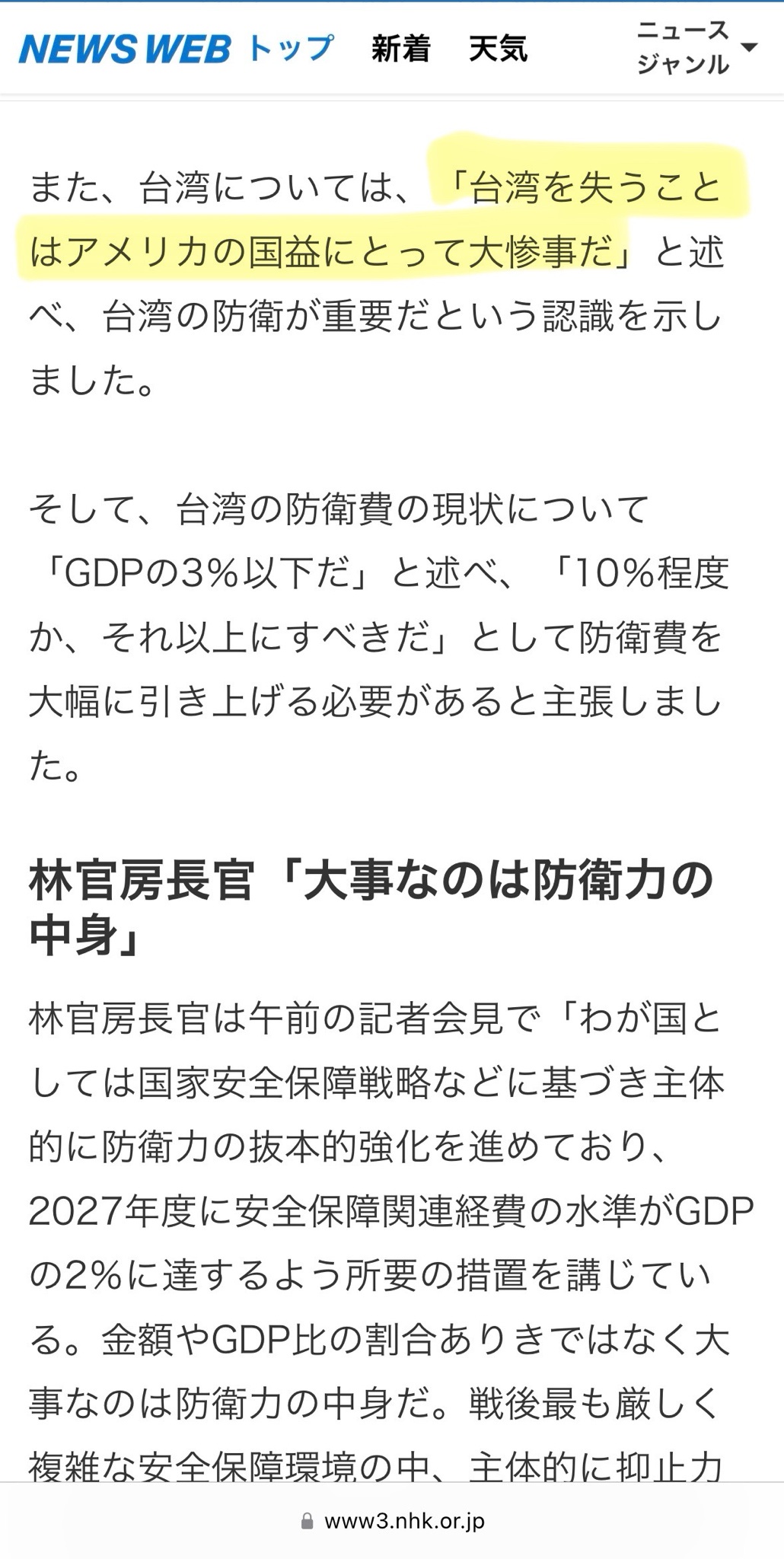 アメリカ「日本は裕福なんだからさっさと防衛費を3%に拡大しろ。台湾取られたらアメリカの覇権が崩壊するだろうが!」