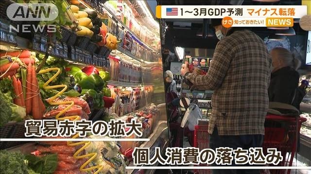 - 2025年1月から3月期のGDPの成長率は年率換算で2.3%以上のプラスと予測されていましたが、マイナス1.5%の減少に転じる見通しとなりました。