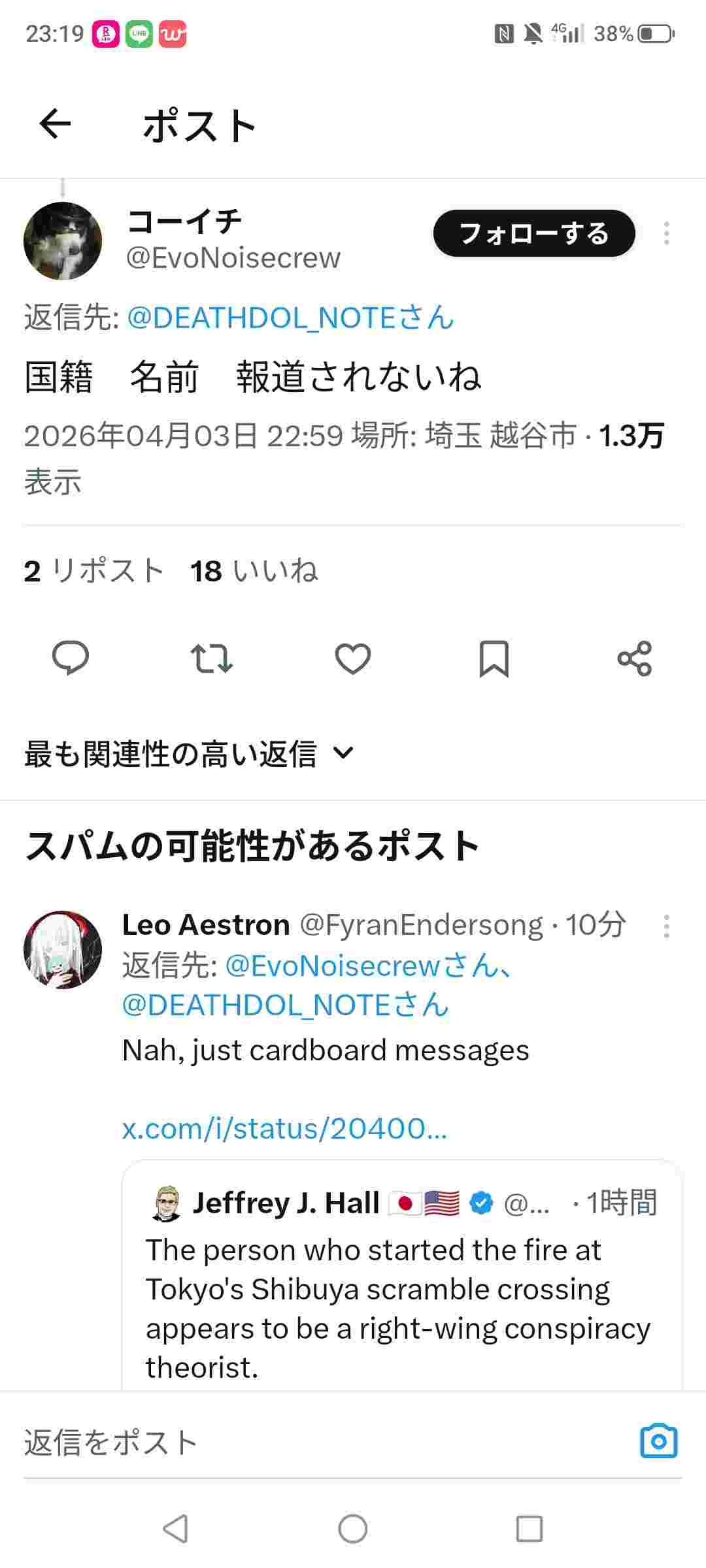 アメリカ人が渋谷スクランブル交差点でガソリンを撒いて放火。重症者2名、尚、報道されず?