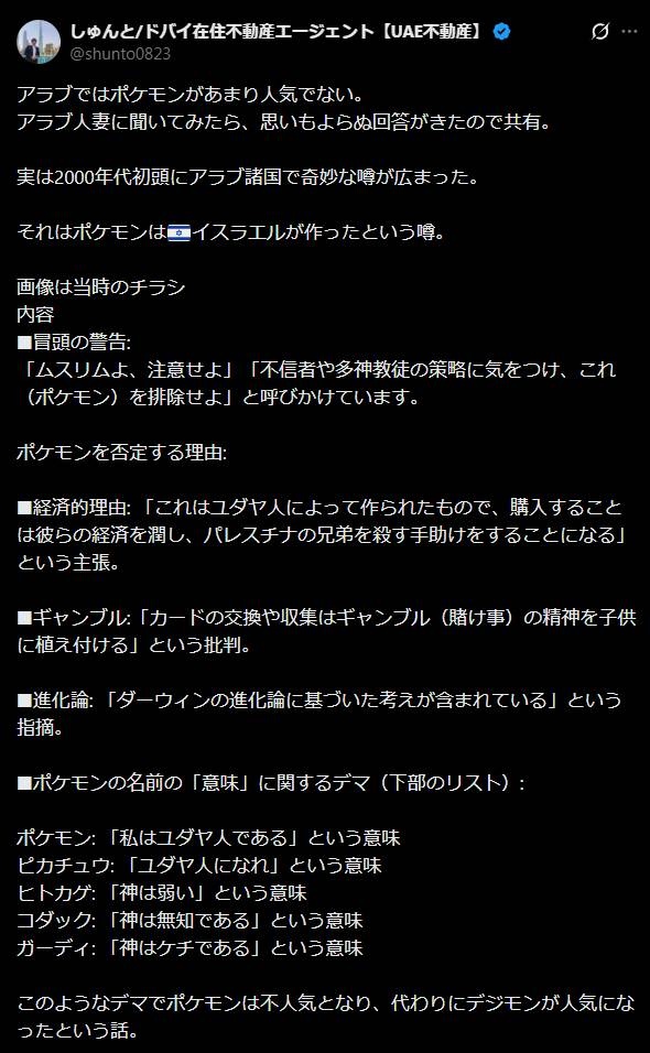 アラブ人「ポケモンはユダヤ人が作ったものでポケモンカードを買うやつはパレスチナ虐殺に加担している!」