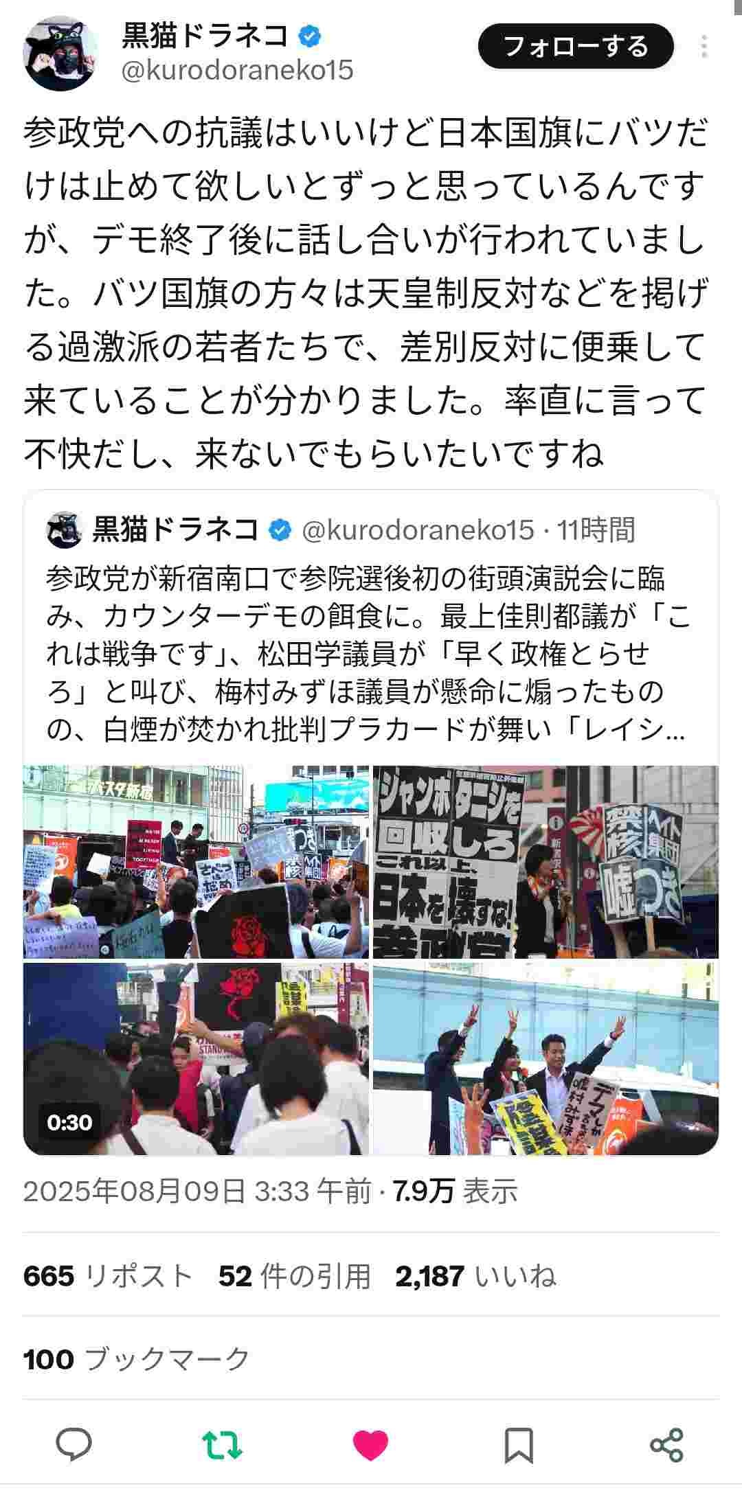 - 俺も天皇制反対だけど、アンチ参政党はアンチ参政党、反天皇は反天皇で個別にやるのがいいだろ