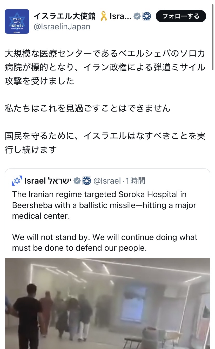 イスラエル、イランのミサイルが病院に着弾してガチギレ