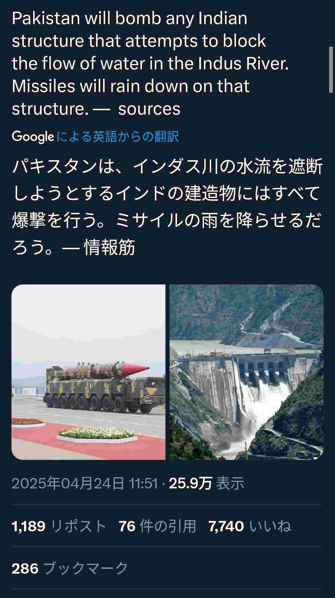 ・パキスタンはインダス川の水を止める行為は宣戦布告だと非難、軍が国境に移動中 - 3 : 2025/04/26(土) 00:41:53.020 ID:6jVA7gbE3