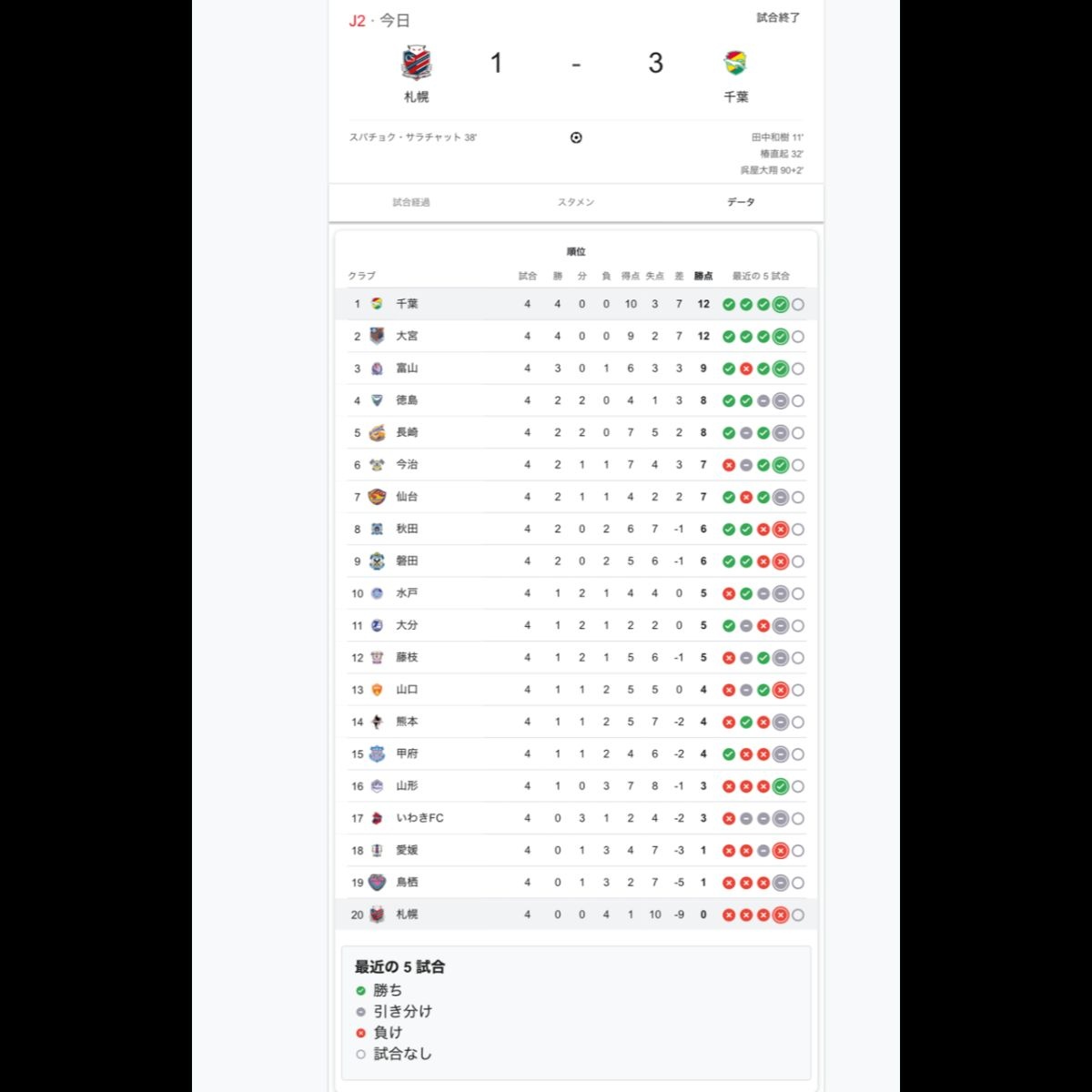 - 富山とか徳島はさすがにこれが続くわけじゃないだろうから千葉と大宮に長崎磐田仙台あたりがついてく感じになるのかな
